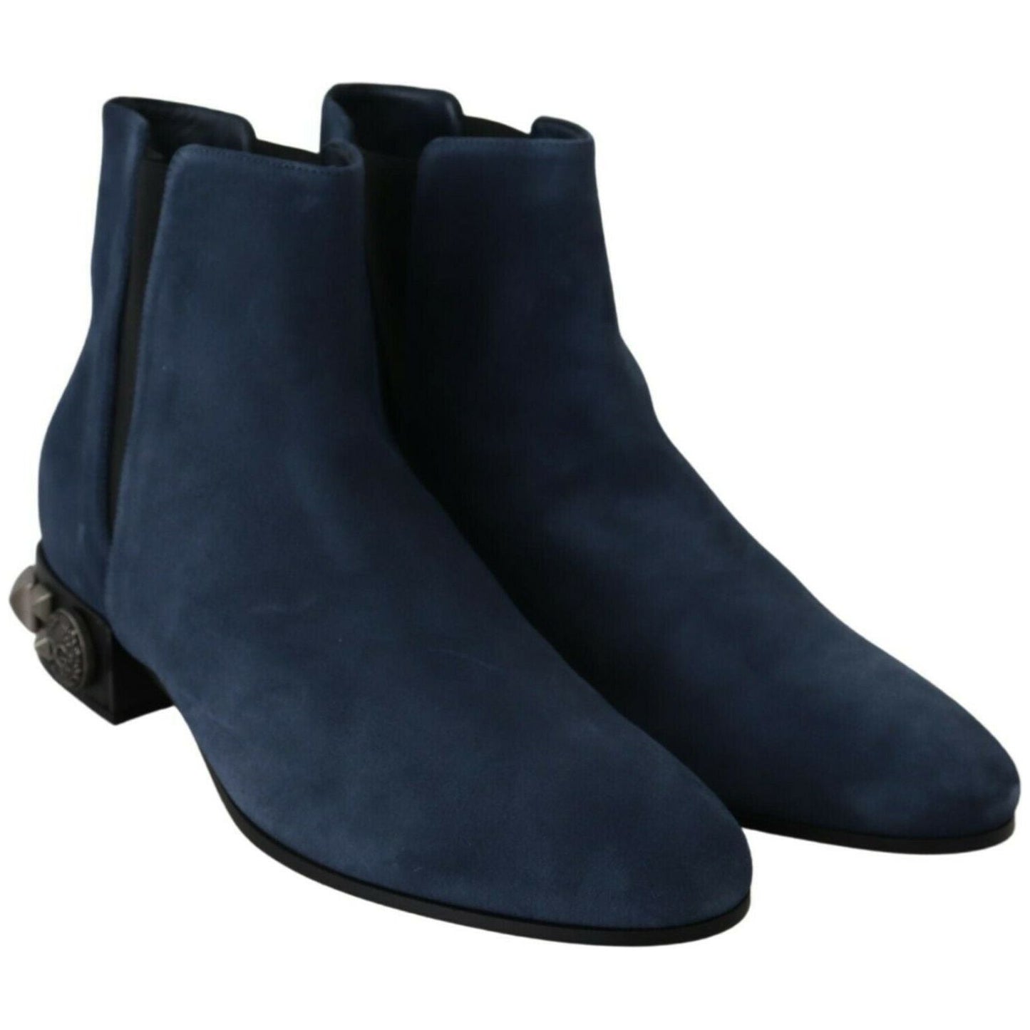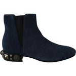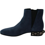 Dolce & Gabbana Blue Suede Embellished Studded Boots Shoes
