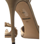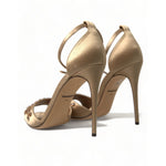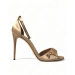 Dolce & Gabbana Gold Satin Ankle Strap Crystal Sandals Shoes