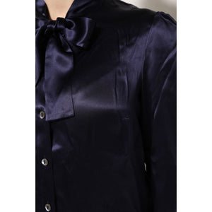Dolce & Gabbana Dark Purple Silk Ascot Collared Blouse Top