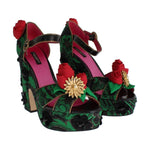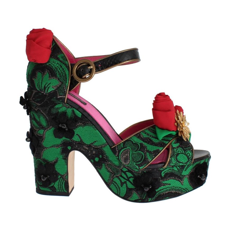 Dolce & Gabbana Green Brocade Snakeskin Roses Crystal Shoes