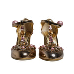 Dolce & Gabbana Gold Embellished Vally Heels Sandals Shoes