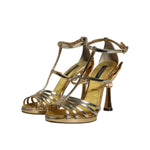 Dolce & Gabbana Gold Leather Baroque Heels Sandals Shoes