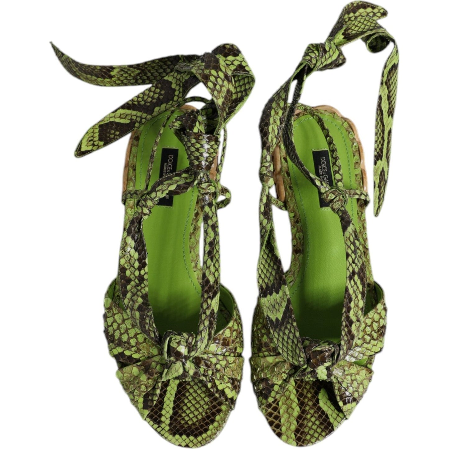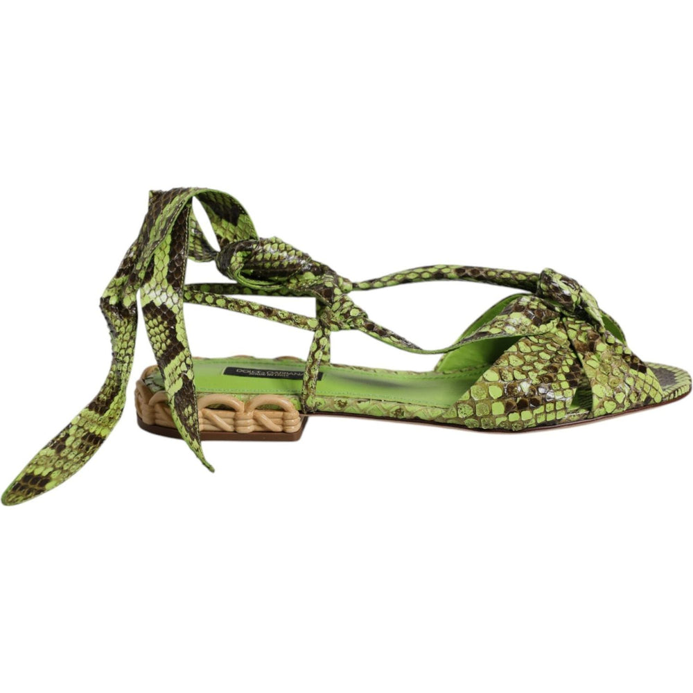 Dolce & Gabbana Green Animal Print Ankle Wrap Sandals Shoes