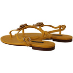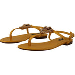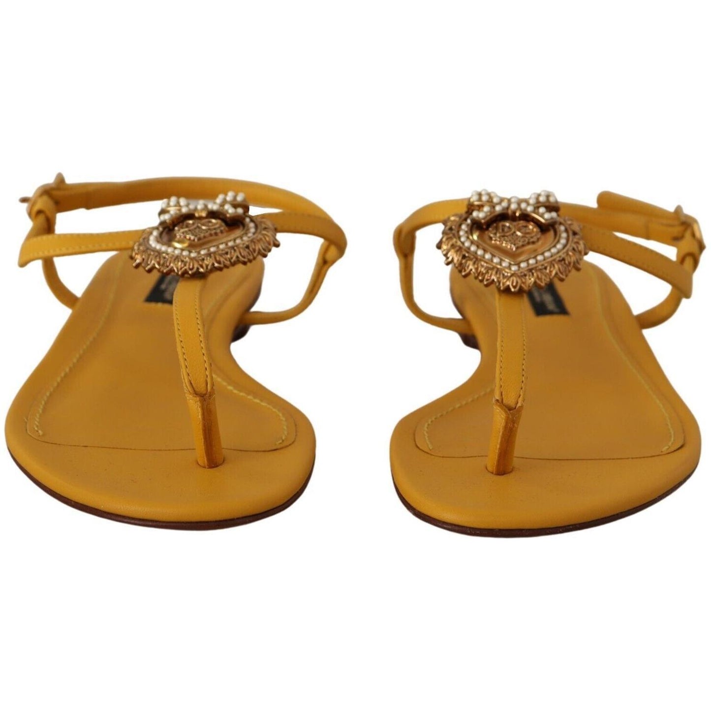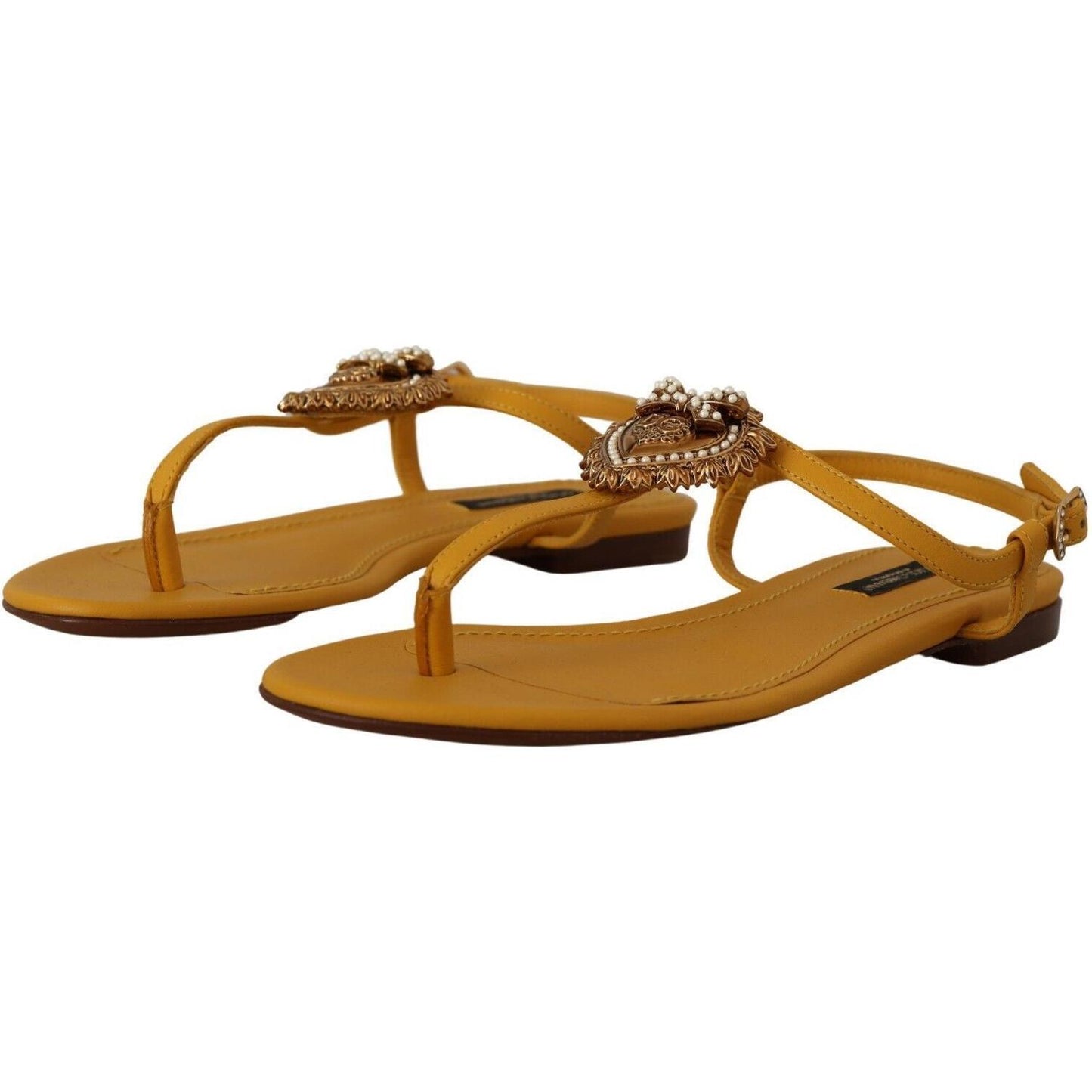 Dolce & Gabbana Mustard Leather Devotion Flats Sandals Shoes