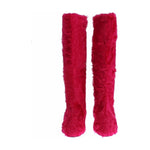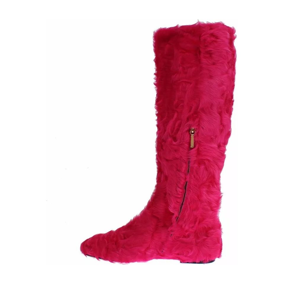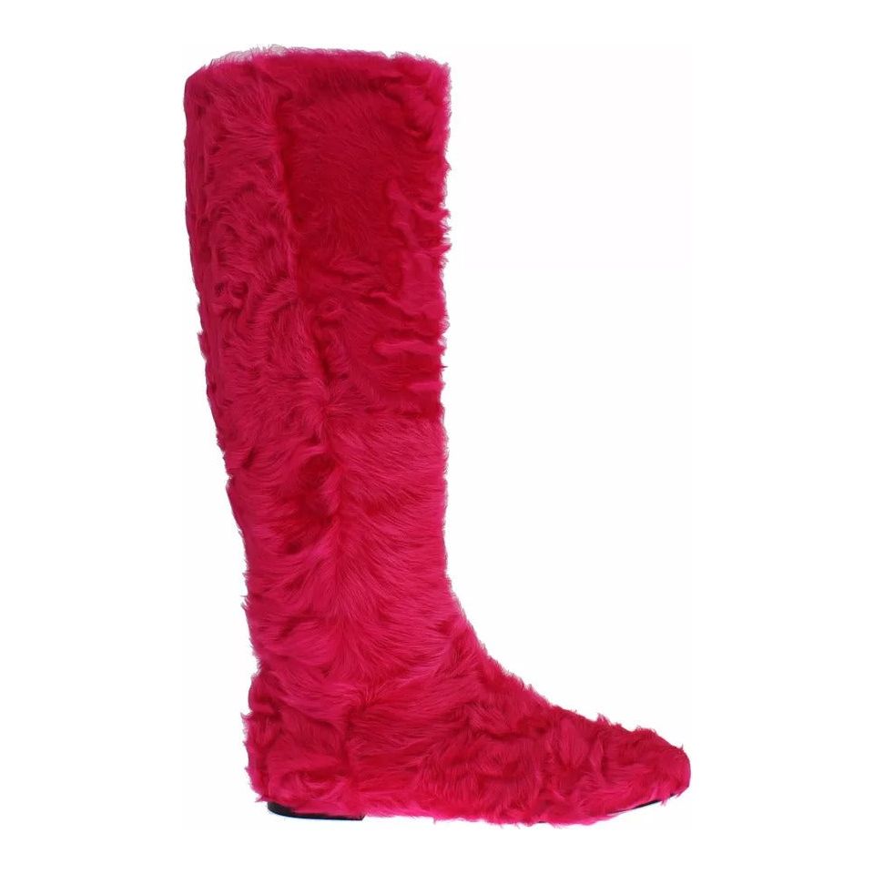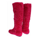 Dolce & Gabbana Pink Lamb Fur Leather Flat Boots Shoes