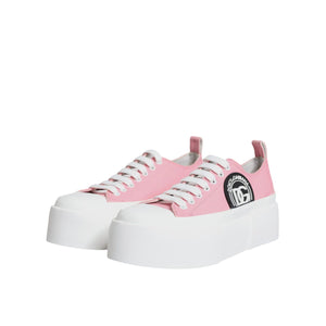Dolce & Gabbana Pink White Canvas Logo Low Top Sneakers Shoes