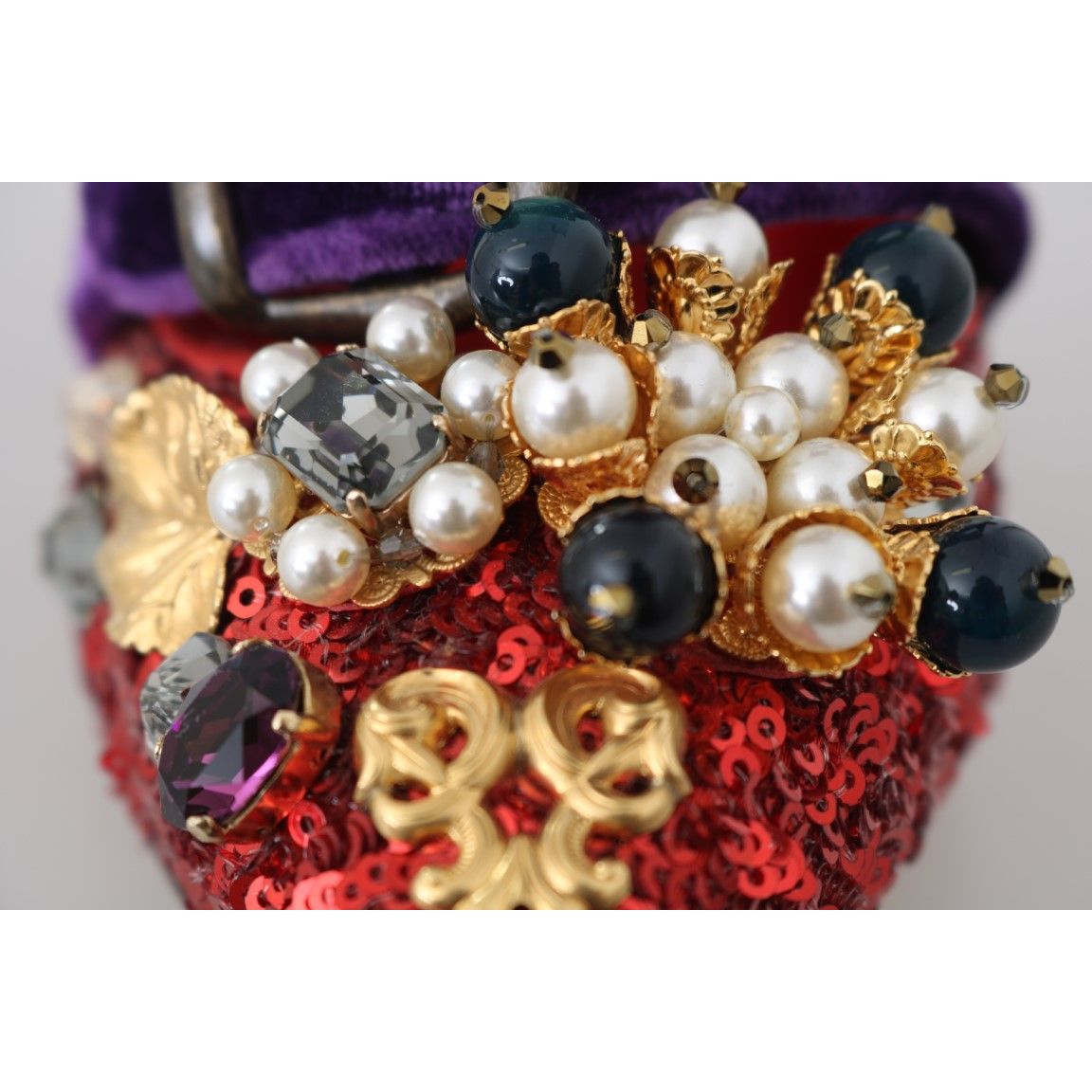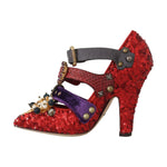 Dolce & Gabbana Red Sequined Crystal Studs Heels Shoes