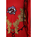 Dolce & Gabbana Red Cotton Queen Sequined Pullover Sweater