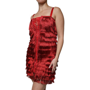 Dolce & Gabbana Red Lace Tassel Sleeveless Sheath Mini Dress