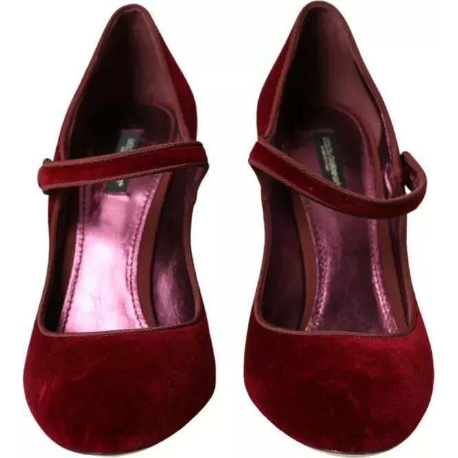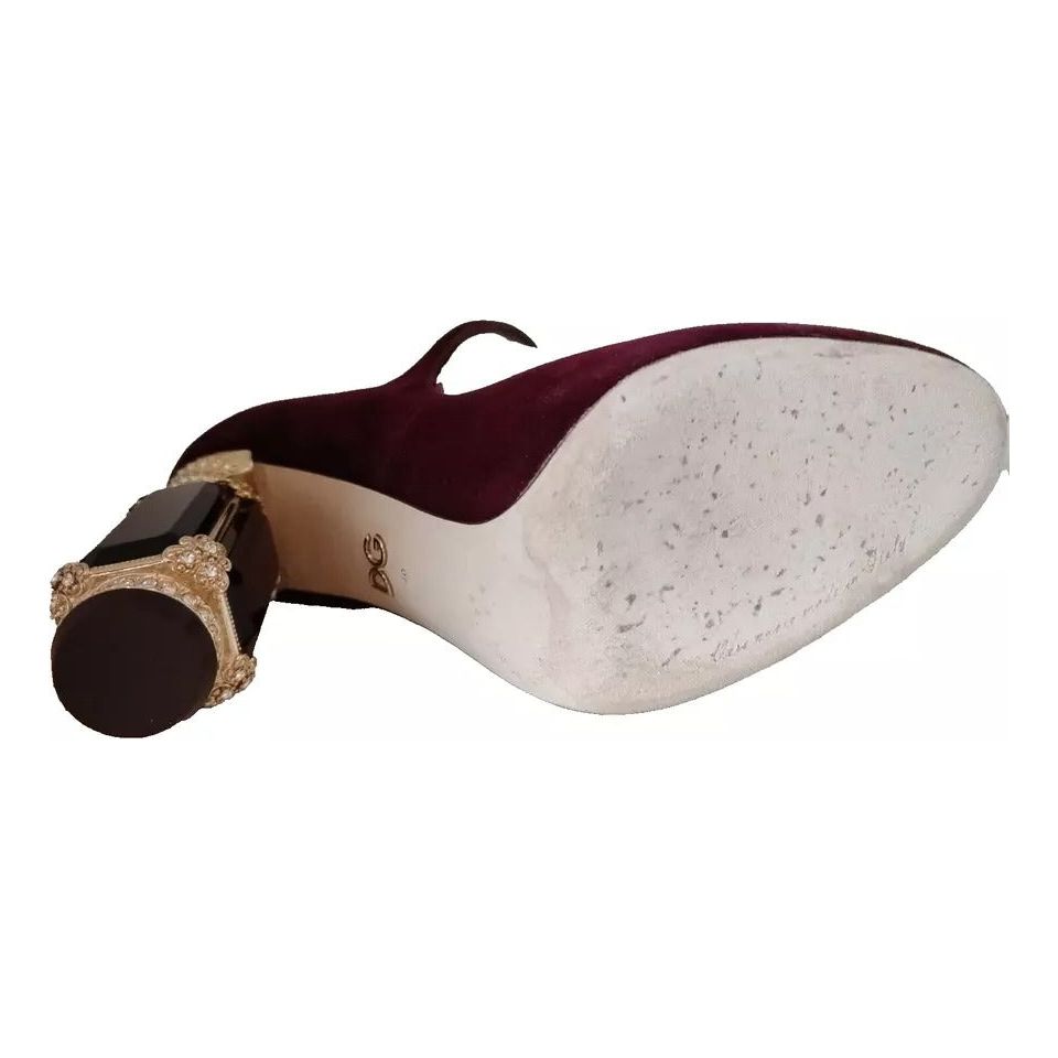 Dolce & Gabbana Red Velvet Gold Crystals Heels Mary Janes Shoes
