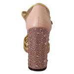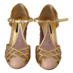Dolce & Gabbana Pink Gold Leather Crystal Pumps T-strap Shoes