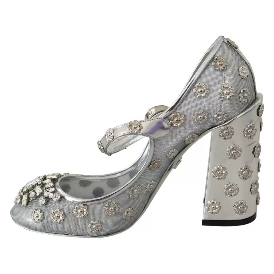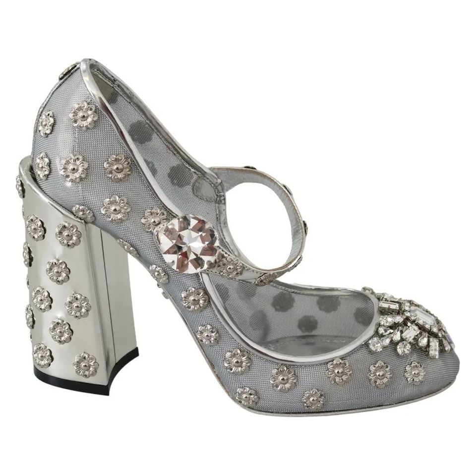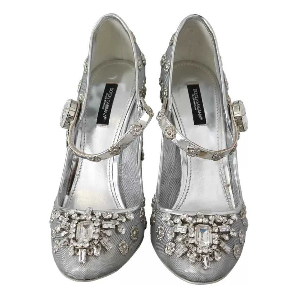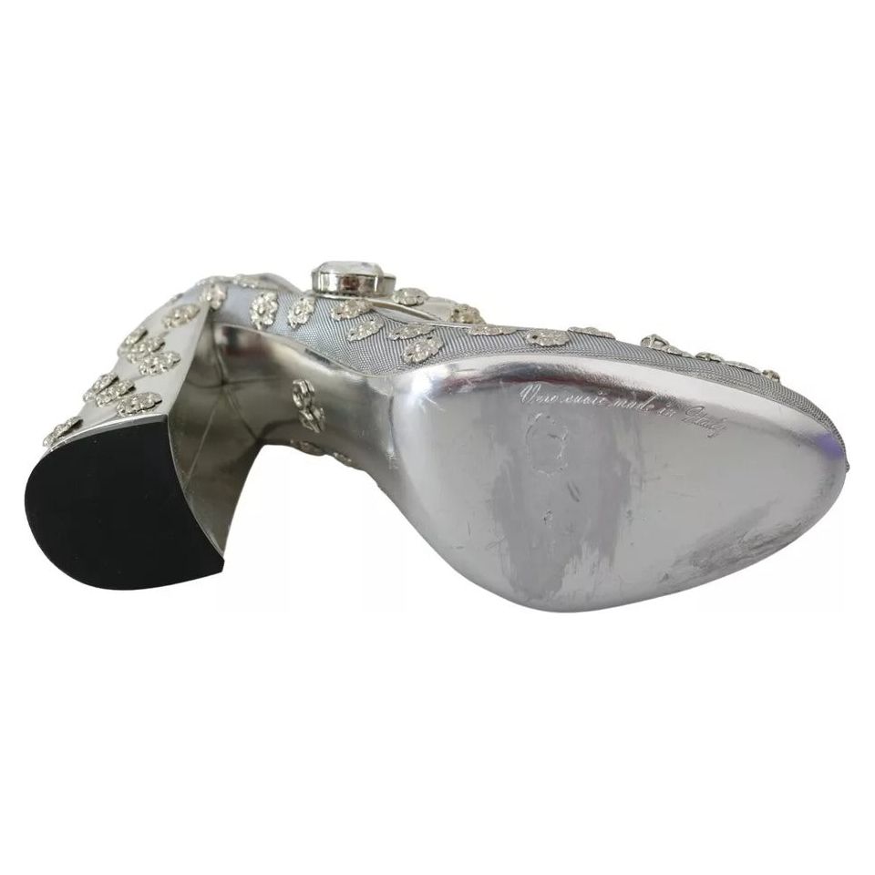 Dolce & Gabbana Silver Crystal Studs Heels Mary Janes Pumps Shoes