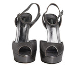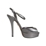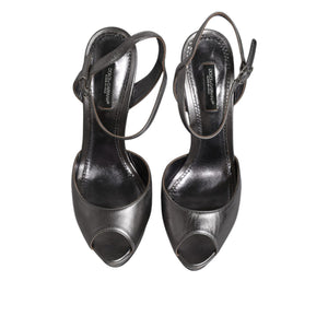 Dolce & Gabbana Silver Leather Platform Heels Sandals Shoes