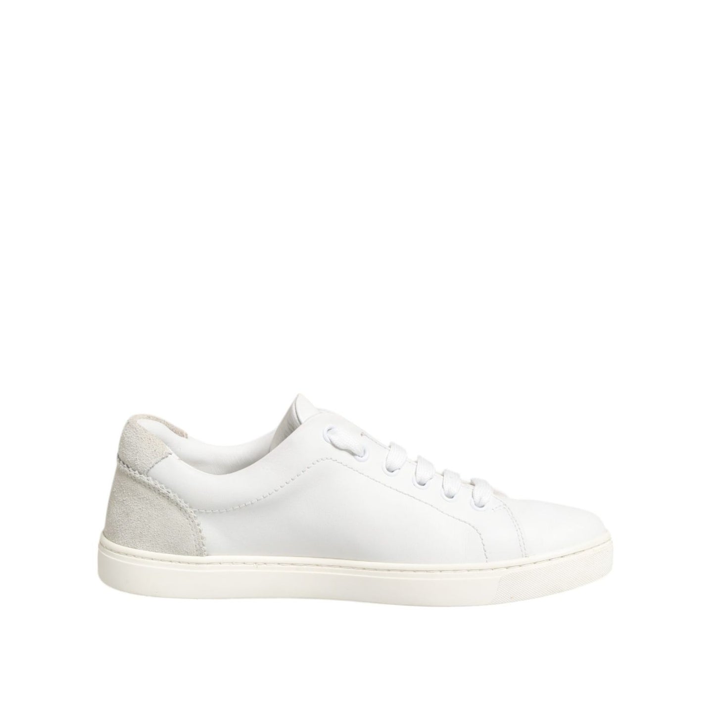 Dolce & Gabbana White Gray Leather Low Top Sneakers Shoes