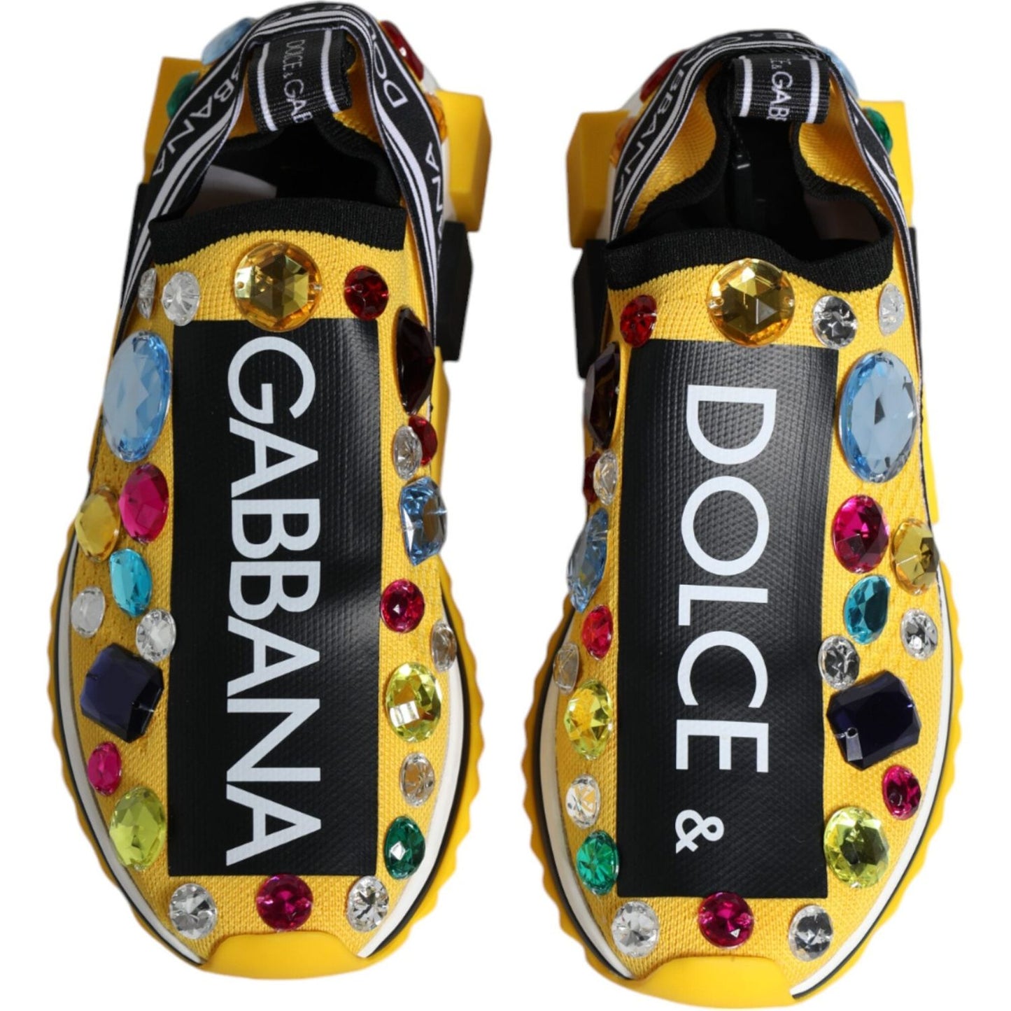 Dolce & Gabbana Yellow Sorrento Crystals Low Top Sneakers Shoes