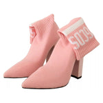 GCDS Pink Suede Logo Socks Block Heel Ankle Boots Shoes
