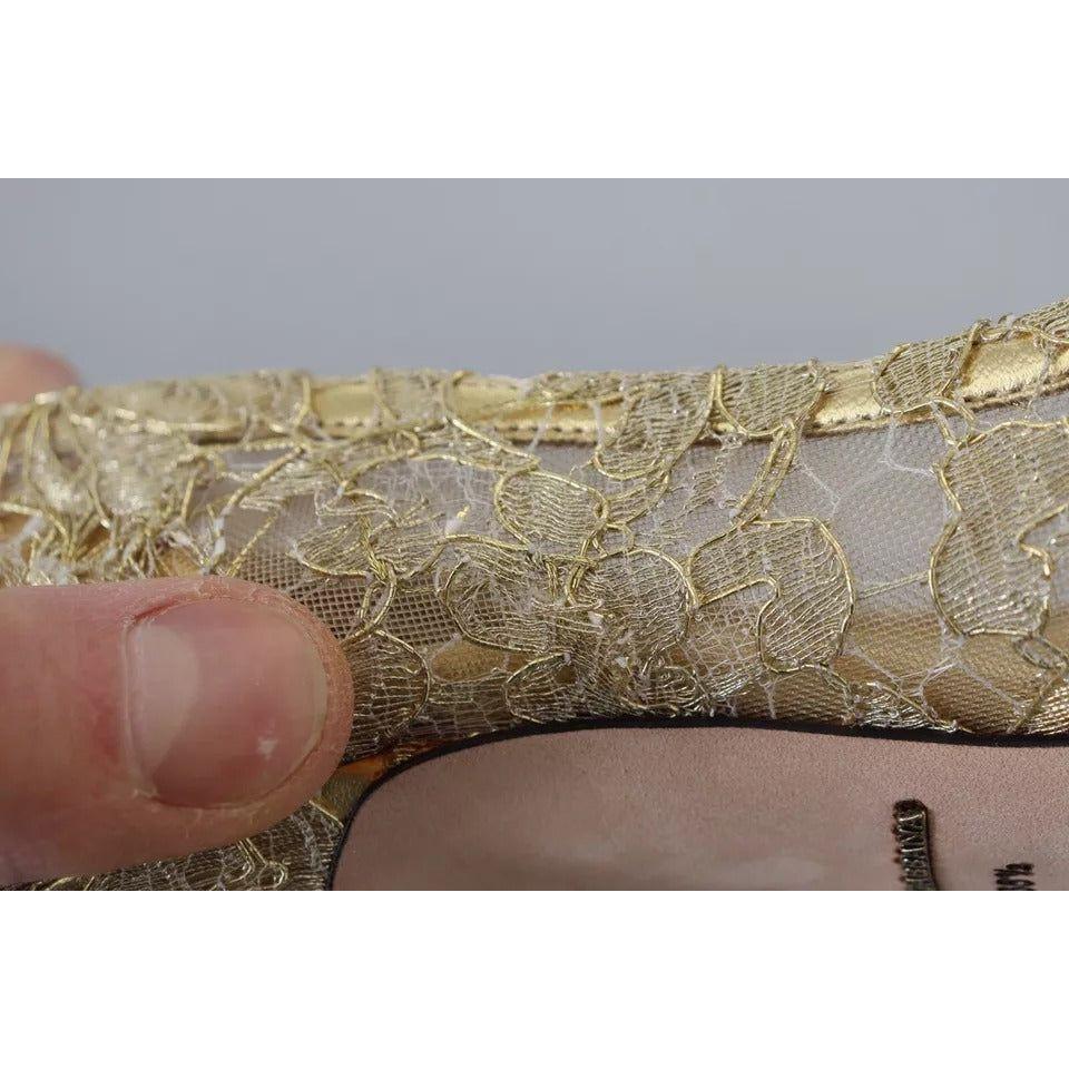 Dolce & Gabbana Gold Taormina Lace Crystal Heels Pumps Shoes