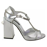 Dolce & Gabbana Silver Crystals T-strap Sandals Leather Shoes