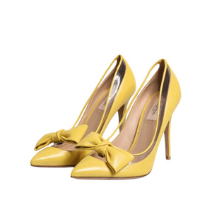 Valentino Yellow Patent Leather PVC Bow Heels Pumps Shoes